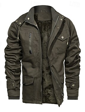 Per uomo Giacca in pile Giacca cargo Giornaliero Da mare Tenere al caldo Tasche Vello Autunno inverno Liscio Di tendenza Streetwear Colletto alla coreana Standard Nero Cachi Verde militare Giacca