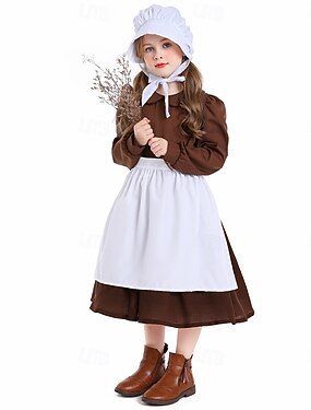 250° anniversario USA 19° secolo anni 1800 Abito da prateria Set cuffia e grembiule Ragazza pioniera Coloniale Pioniere Guerra rivoluzionaria Costume Ragazze Halloween Carnevale 4 luglio Bambini