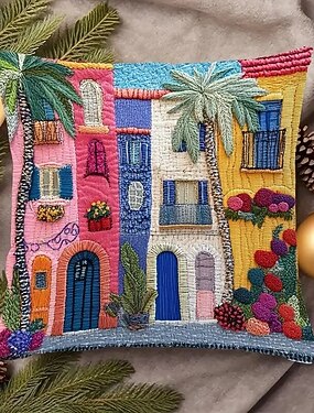 Federa per cuscino in stile mediterraneo con stampa piatta 2D su un lato, con piante e fiori colorati, decorazione per divano, soggiorno, casa