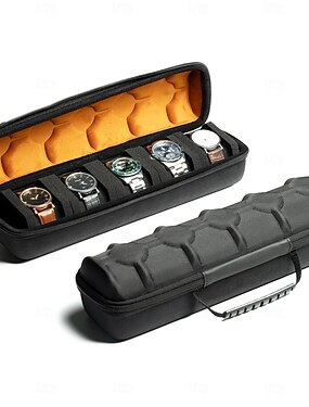 Custodia da viaggio con 5 scomparti per orologi (fodera in microfibra marrone / fodera in microfibra nera opzionale), scatola e organizer portatile per orologi da polso e smartwatch.