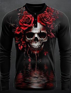 Maglietta da uomo grafica cool teschi camicia Henley manica lunga moda carina quotidiana casual vacanza autunno primavera e autunno nera Henley t-shirt