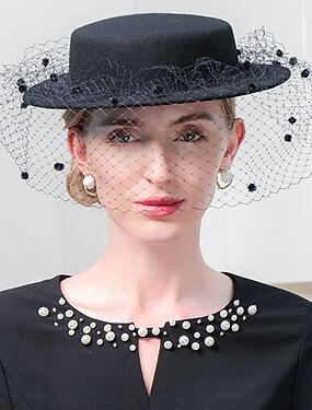 cappelli eleganti in lana da spiaggia/tulle con rifiniture/tulle 1pc per feste/serata/copricapo per le feste/cappelli di paglia con fiocco in raso casual/copricapo per le feste/protezione solare