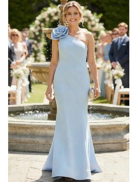 Tute Lunghezza al pavimento Abito a Portafoglio Abito da cerimonia per signora Senza Maniche Monospalla Elegante Semplice Formale Ospite di nozze Riunione di famiglia Tessuto Elasticizzato con Tinta