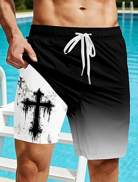 Per uomo Colore sfumato Croce Pantaloncini foderati Pantaloncini da bagno 2 in 1 Costumi da bagno Pantaloncini da bagno Misura del girovita medio Retrò Vintage Vacanza al Mare Tasche Laterali Con