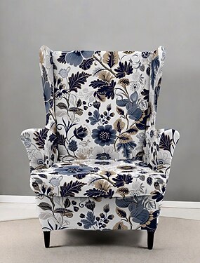 Copripoltrona con schienale alto, in poliestere con stampa floreale a righe e geometrica, per soggiorno, camera da letto e ufficio domestico