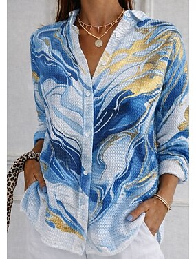 Per donna Camicia a nido d'ape Camicia casual Top estivi Grafico Blocco di colori Astratto Elegante Vacanza Vintage Manica Lunga Collo ripiegato Top lunghi Quotidiano All'aperto Abbigliamento casual