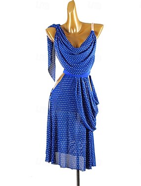 Balli latino-americani Abbiglimamento balli esotici Abito Lustrini Nappa Con ruche Per donna Prestazioni Addestramento Senza maniche Alto Poliestere