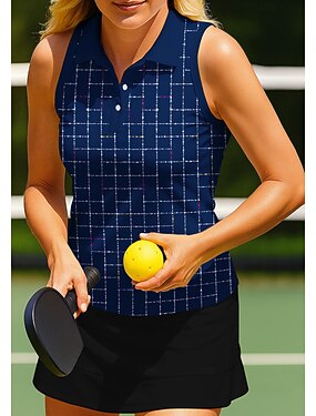 Per donna Geometrico Blocco di colori A quadri Quadri Canotta da allenamento Maglietta Maglietta sportiva Polo da golf Senza Maniche Sportivo UPF50+ Resistente ai Raggi UV Allenamento Danza