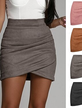 Per donna Elegante Moda Mini Vita Alta Gonne Semplice Micro-elastico Streetwear Data Nero Rosa Cachi Grigio Primavera Pelle scamosciata