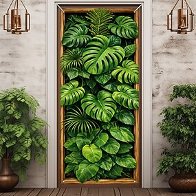 Copriporta con motivo a foglie tropicali, illusione ottica 3D, stampa piatta 2D, design realistico per l'arredamento della casa