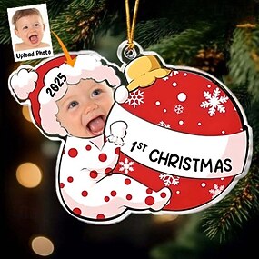 Decorazioni di Natale in foto personalizzate 1° Primo Natale Faccia di bambino acrilico 2D Ornamenti per albero di Natale personalizzati Regali pendenti