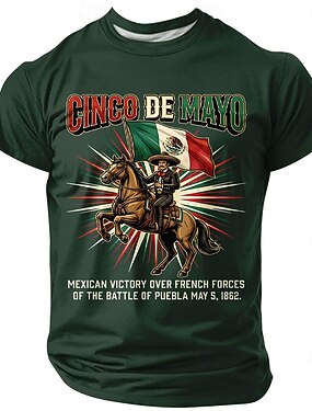 Cinco de Mayo, maglietta da uomo con grafica della battaglia di Puebla, vittoria messicana, storia, cavallo, bandiera, retrò, maniche corte, girocollo, top casual, celebrazione, abbigliamento di