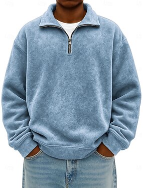 Felpa polo da uomo in finta pelle scamosciata con cerniera, per le vacanze, da strada, a maniche lunghe, alla moda, basic, tinta unita, semplice, autunno, primavera, autunno, tutte le stagioni, vestibilità comoda, nero, rosa, verde militare, blu navy, blu