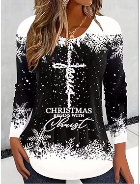 Camicetta Natalizia per Donne T-Shirt Grafica Claus Elegante Moda Vintage Maniche Lunghe V Collo Regolare Top Stampa Quotidiana Weekend Rosa Polveroso Rossa Verde Blu Chiaro Primavera Autunno Inverno