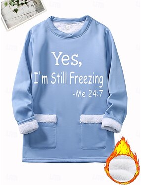 Per donna Felpa Pullover Animale Gatto Moda Essenziale Casual Manica Lunga Girocollo Top lunghi Streetwear Abbigliamento Quotidiano Casuale Stampato Foderato in pile Nero Rosa Rosa scuro Blu Autunno