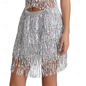 Gonna con Frange e Paillettes Samba Dancewear Gonna Latina con Elastico Costume di Performance per Danza Moderna Ballo Salsa Samba