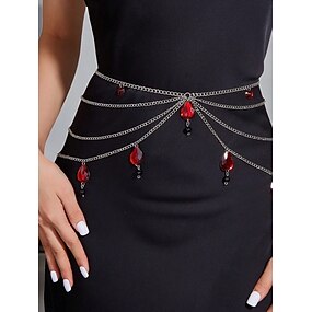 Gioielli da donna con catena in argento e pietre preziose rosse - catena da vita gotica per feste di Halloween e abiti da sera