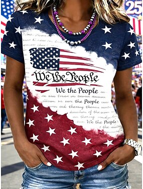 Giorno dell'Indipendenza Americana Per donna Maglietta Stampato Grafico Bandiera Lettera Elegante Classico Casual Manica Corta Girocollo Top Regolari Quotidiano Blu Estate Primavera