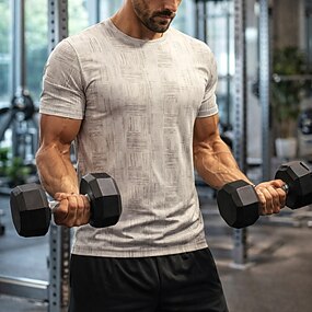 Per uomo A quadri T-shirt da corsa Maglia a compressione Maglia atletica Sport in alto Estate Manica Corta Asciugatura Rapida Traspirante Allenamento in Palestra Camminata Jogging Blu Grigio scuro