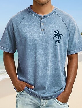 Per uomo Vintage Palma Lavato Maglietta Top Henley Camicia lavata Manica Corta Vintage Angosciato Casuale Quotidiano All'aperto Estate Primavera Tutte le stagioni Blu chiaro Viola Grigio Henley