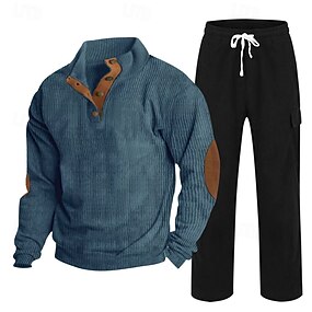 Per uomo Maglia Tuta da Ginnastica Set di abiti Collo alla coreana All'aperto Quotidiano Sportivo Coulisse Tasca Blocco di colori Nero Blu marino Marrone Poliestere Velluto a coste Abbigliamento
