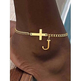 cavigliera personalizzata in acciaio inossidabile da donna con ciondoli dell'alfabeto, design a croce e lettere, regalo di Natale ideale - 26 lettere disponibili