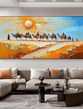 dipinto a olio originale fatto a mano con cammello del deserto su tela, decorazione artistica da parete, dipinto astratto per la decorazione domestica con cornice allungata/senza cornice interna