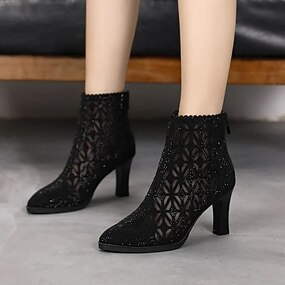 stivaletti da donna in rete nera con decorazioni in strass – elegante design con tacco alto per feste e serate