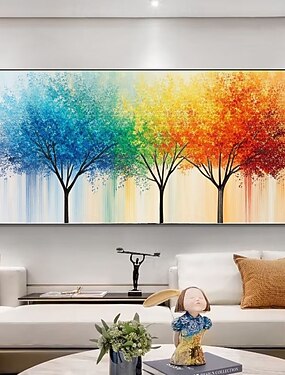 dipinto di paesaggio con alberi colorati fatto a mano, grande foresta, arte murale, grande dipinto a olio originale su tela, dipinto della stagione autunnale, dipinto del soggiorno
