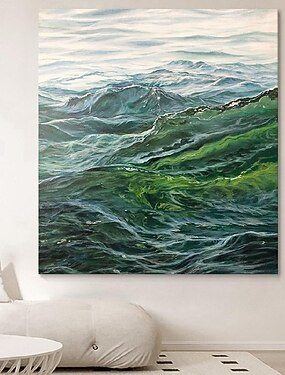 dipinto a olio fatto a mano arte murale alla moda arte murale extra large arte murale astratta verde salvia di grandi dimensioni arte murale paesaggio costiero oceano arte murale originale dipinto