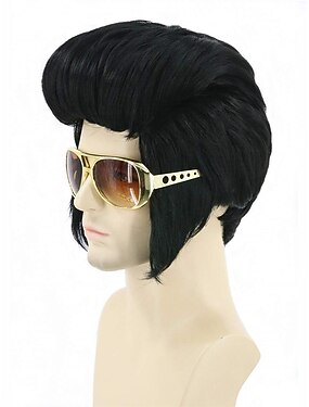 Parrucca Nera Corto Disco per Uomini per Stile Rock degli Anni '50 Cosplay Carnevale Costume Festa Parrucca Parrucche di Halloween