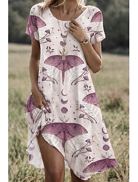 disegno episodico abito midi da donna prendisole abito t-shirt abito maglietta vacanza casual uscire vestibilità regolare floreale grafica manica corta scollo a V viola chiaro viola scuro estate