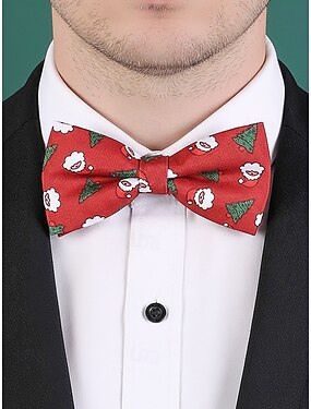 papillon natalizio da uomo – tessuto in poliestere con disegni festosi di Babbo Natale, albero e neve, perfetto per feste e celebrazioni natalizie