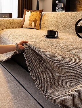 Asciugamano per divano multifunzionale intrecciato colorato color cammello, copridivano universale quattro stagioni, con nappe, adatto per poltrona, divano, divano letto, divano combinato