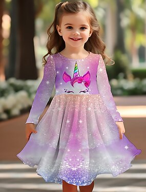 ragazze' 3D Pop art Unicorno Vestito Manica lunga Estate Primavera Da mare Giornaliero Per eventi Da principessa Bellissimo Dolce Bambino 4-12 anni Abito casual Abito linea A Al ginocchio Standard