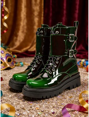 Stivaletti combat in pelle verniciata da donna per il Mardi Gras con dettaglio fibbia – Calzature audaci e alla moda per festival parate e uscite casuali