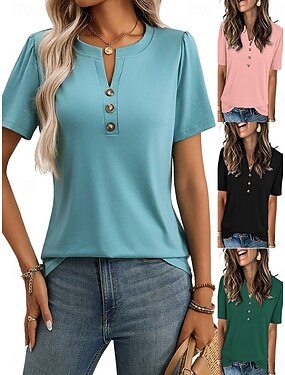 Per donna Camicia Blusa Maglietta Patchwork Bottoni Semplice Elegante Vacanza Vintage Manica Corta Scollo a V Top Regolari Quotidiano Ferie Uscire Blu Nero Rosa Arancione Verde Estate Primavera