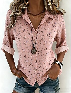 Camicia da donna in lino come traspirante leggera floreale grafica geometrica elegante vintage tropicale a maniche lunghe colletto top regolari da indossare quotidianamente lavoro bottoni stampa rosa