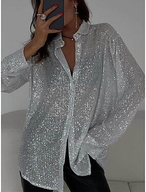 Per donna Camicia casual Camicia con Bottoni Blusa Paillettes Bottoni Tinta unica Elegante Casual Manica Lunga Collo ripiegato Top Regolari Quotidiano All'aperto Feste Verde salvia Nero Bianco