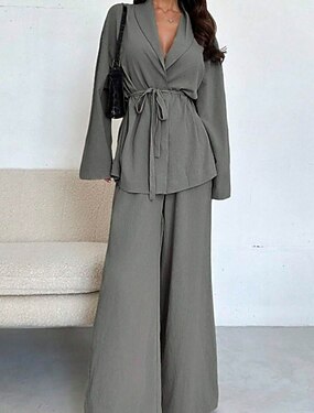 Per donna Set di Pantaloni Bolero Top Manica Lunga Scollo a V Semplice Arricciato Allacciato Patchwork Elegante Caldo Attivo Casuale Quotidiano All'aperto Nero Marrone Beige Autunno Vestibilità comoda