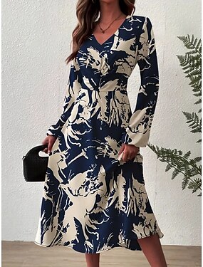 Per donna Abito Midi Abito a trapezio Vacanza Casual Quotidiano Festa serale Feste Vestibilità regolare Floreale Grafico Manica Lunga Scollo a V Azzurro cielo Estate Primavera