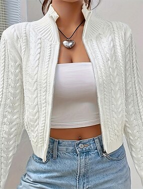 Per donna Felpa Cardigan Elegante Moda Carino Tinta unica Collo alla coreana Cerniera Lavorato a maglia Stampato Manica Lunga Top Regolari Maglia All'aperto Quotidiano Ferie Rosso bordeaux Nero