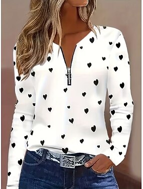 San Valentino Per donna Maglietta Cerniera Stampato Cuore Grafico Vintage Moda Elegante Manica Lunga Girocollo Top Regolari Quotidiano Bianco Primavera Autunno