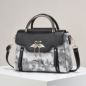 elegante borsa a mano da donna con ciondolo a forma di cigno - design paisley bianco e nero con dettagli dorati e tracolla regolabile