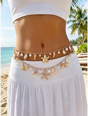 Cavigliere da donna in resina e lega multicolore in stile bohémien, con design a perle e conchiglie, perfette per le vacanze e per l'uso quotidiano casual