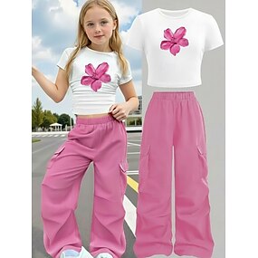 2 Pezzi Bambini Ragazze Lettera T-shirt e pantaloni Impostato Manica Corta Vacanza Casuale Dai 4 anni in su Estate Bianco