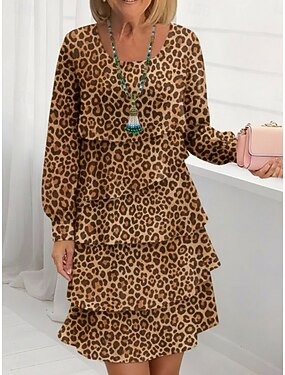 Per donna Mini Abito Abito a Tubino Vestito Casual Vestito in Chiffon Abito a Strati Elegante Moda Moderno Quotidiano All'aperto Weekend Vestibilità regolare Leopardo Manica Lunga Girocollo Leopardo