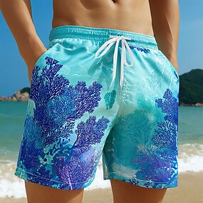 Per uomo Corallo Piante acquatiche Costumi da bagno Pantaloncini da mare Pantaloncini da Surf Misura del girovita medio Hawaiano Vacanza al Mare Tasche Laterali fodera in rete Coulisse elastica in