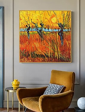 pittura a olio fatta a mano su tela decorazione di arte della parete van gogh famoso dipinto salici al tramonto paesaggio per la decorazione domestica laminata senza cornice pittura non stirata