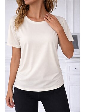 Tee da donna in cotone 100% T-shirt sportiva cuciture a vista a tinta unita stilosa base casual a maniche corte girocollo tops regolari palestra sport uscita Blu Nero Albicocca Grigio Estate Primavera